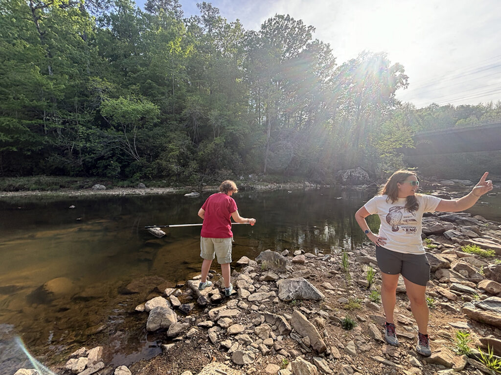 Sound Rivers Volunteer Coordinator Emily Fritz was in Hillsborough, introducing volunteers with the Eno River Association to Swim Guide.