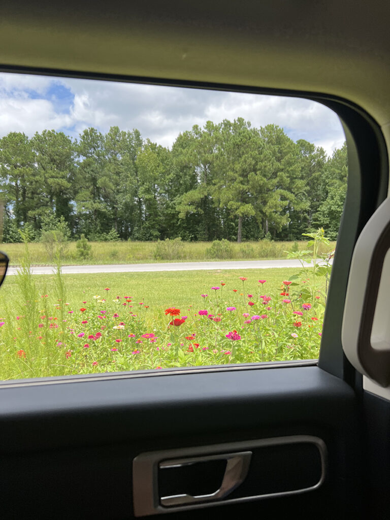 “We drove up the old landfill, and it was covered in grass. If I hadn’t known that we were at a landfill, I would have thought we just were just on a beautiful hill. Somer’s been planting a ton of pollinator gardens around, so there were fields of beautiful flowers and a pumpkin garden,” Emily said.