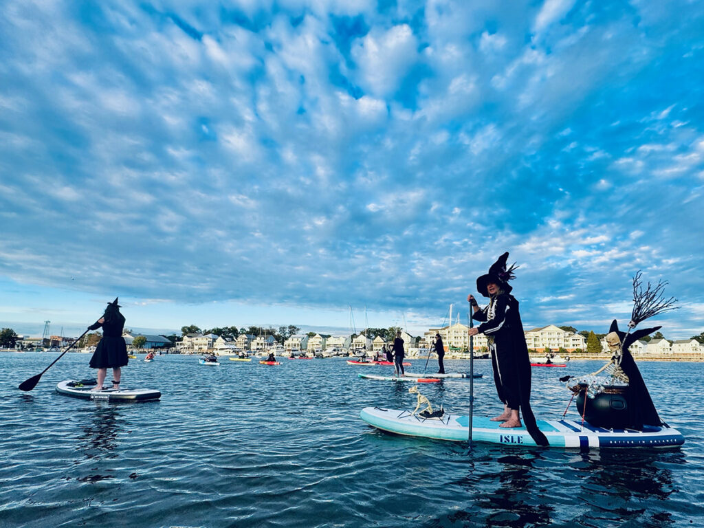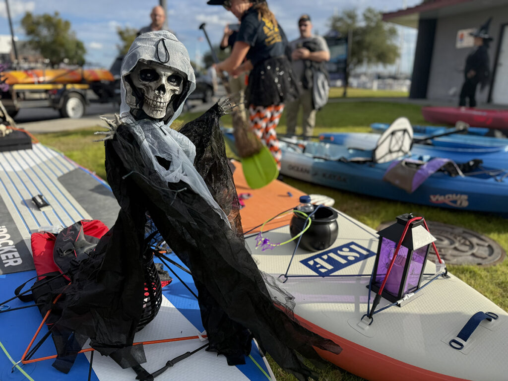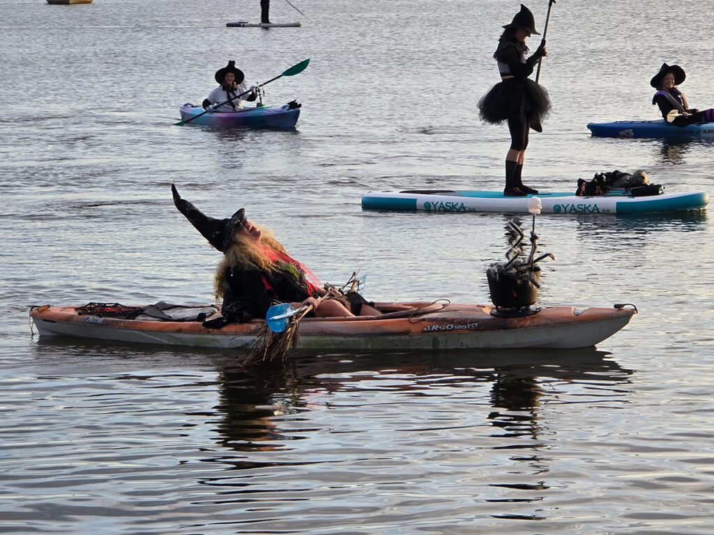After a brief meeting at the dockmaster’s station of all “witches” and “warlocks,” 44 kayaks and paddleboards were launched from a single kayak launch in 15 minutes.