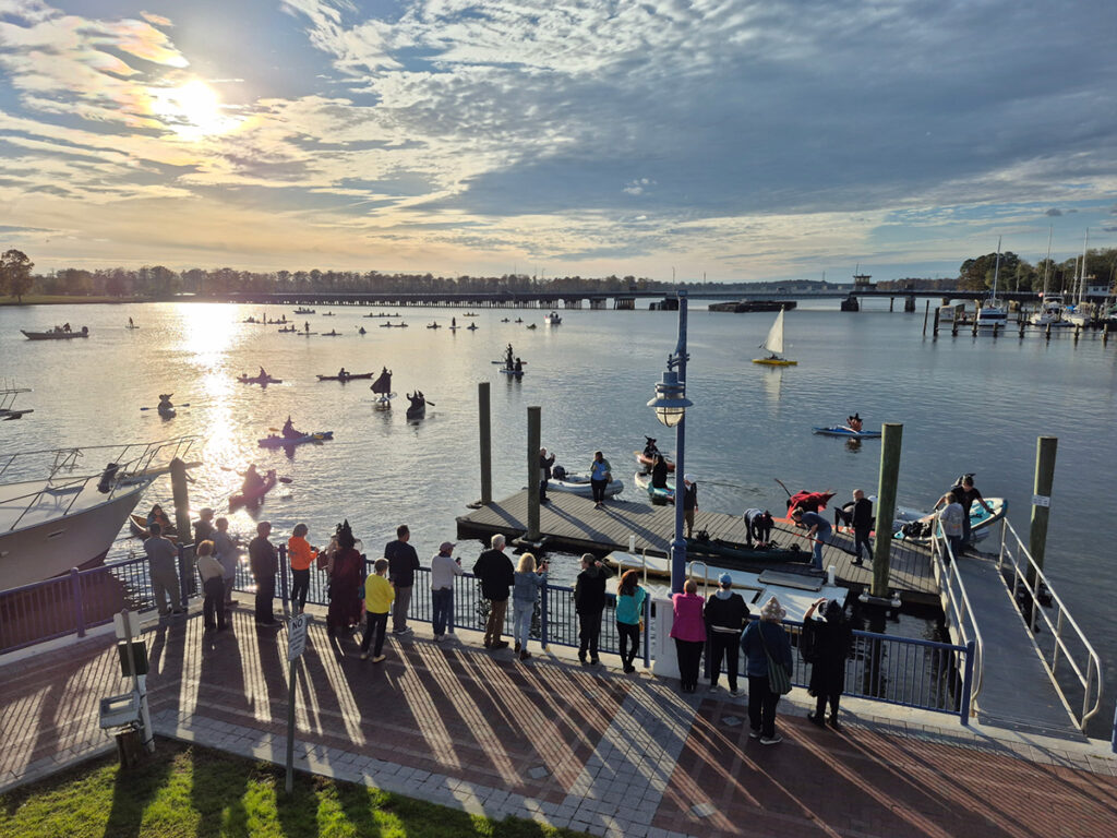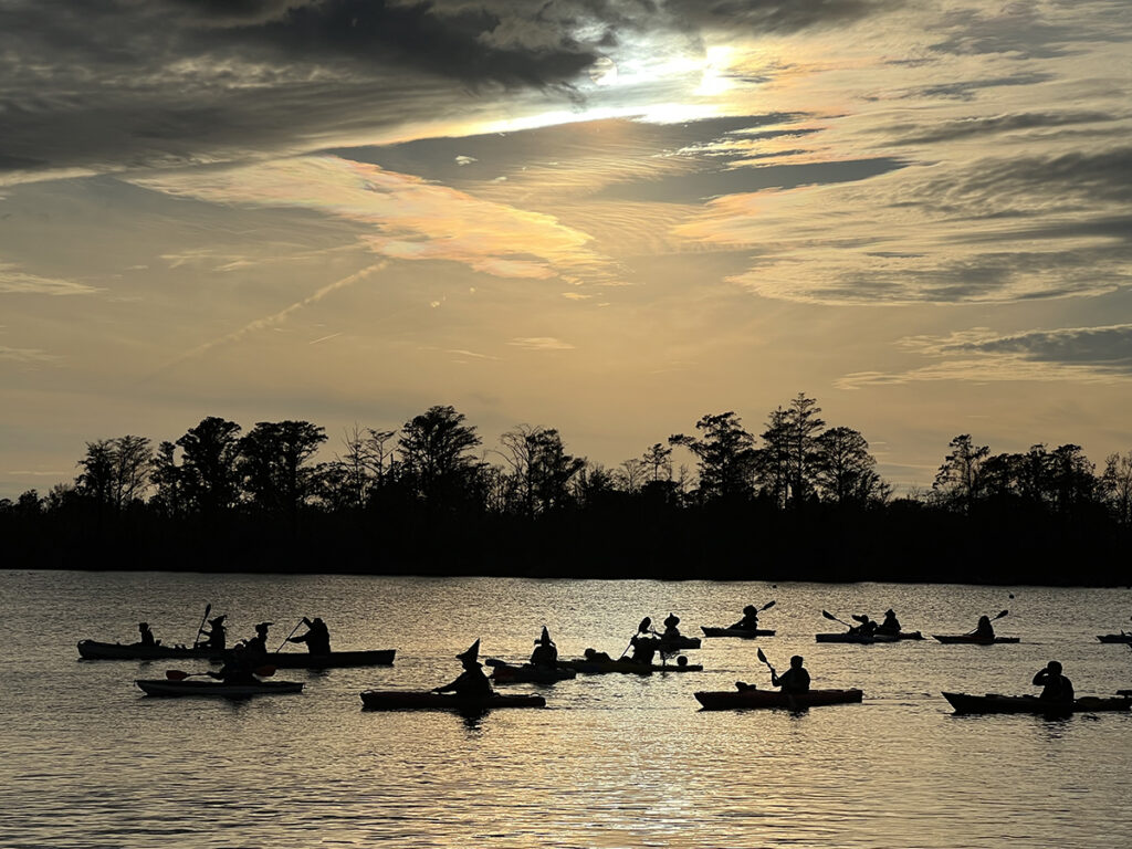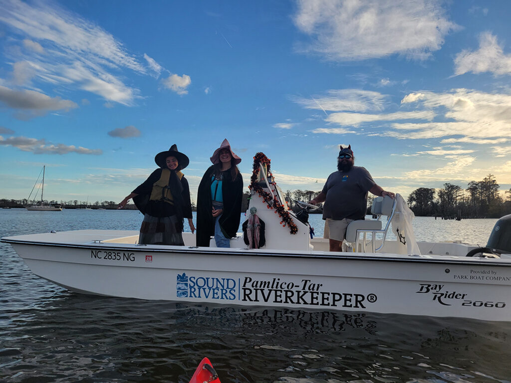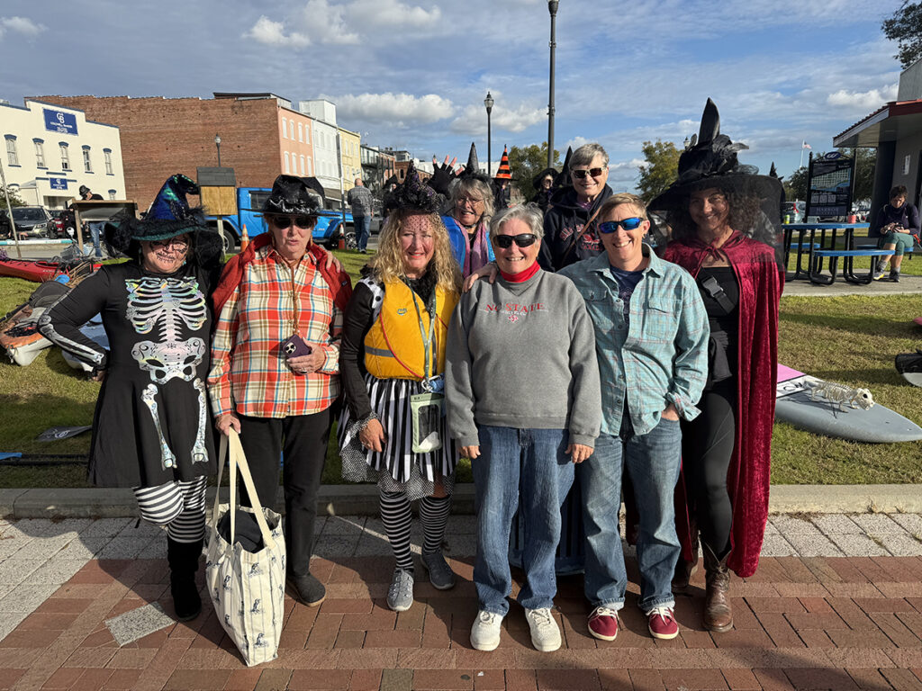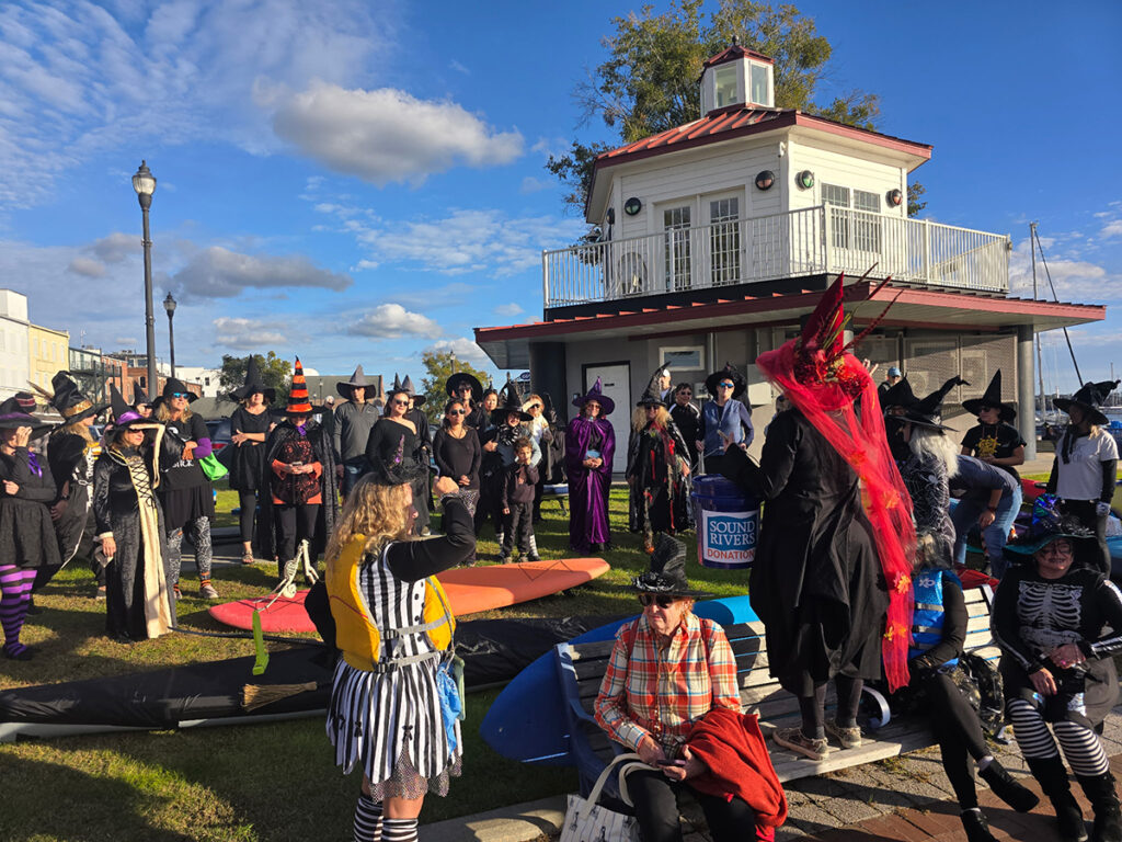 On Sunday evening, Oct. 26, “witches” and “warlocks” of all warts and sizes paddle along the Washington waterfront for the second-annual Witches Paddle, a donation-only fundraiser benefitting Sound Rivers. The event collected $550 and was hosted by Liane Harsh, owner of Inner Banks Outfitters, and Vail Rumley, Sound Rivers communications director.